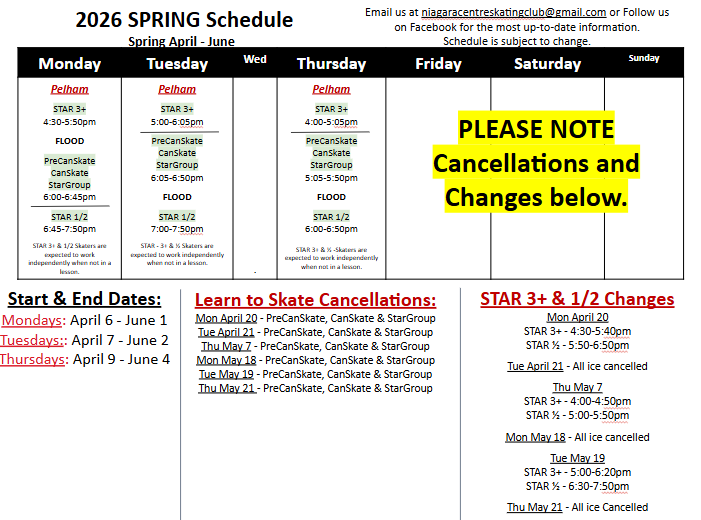 All Learn to skate programs will return to regular schedule on Monday January 12th, 2026.